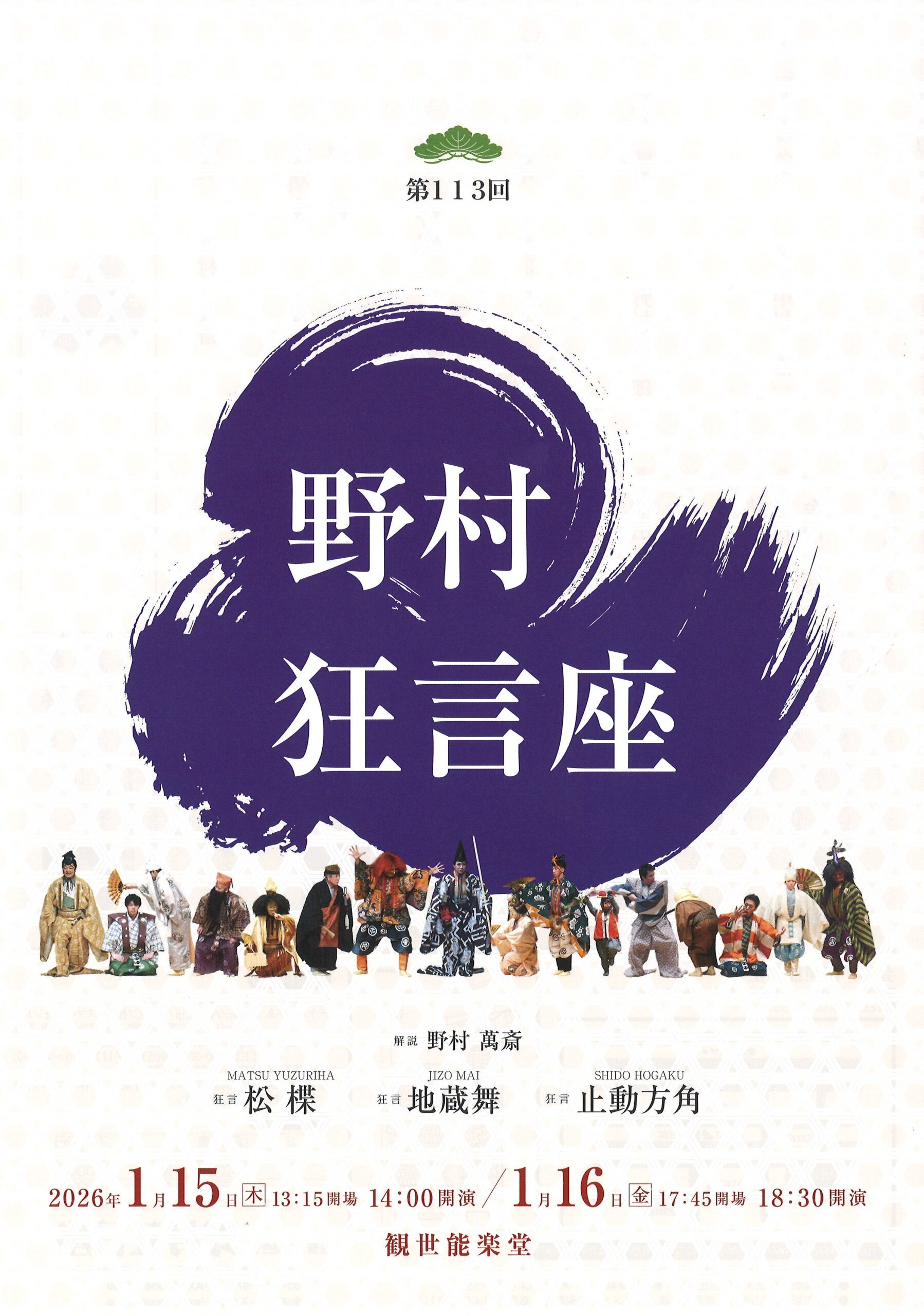 1/14(木)・15(金)開催「第113回野村狂言座」一般発売情報【12/15(月)午前10:00~発売】
