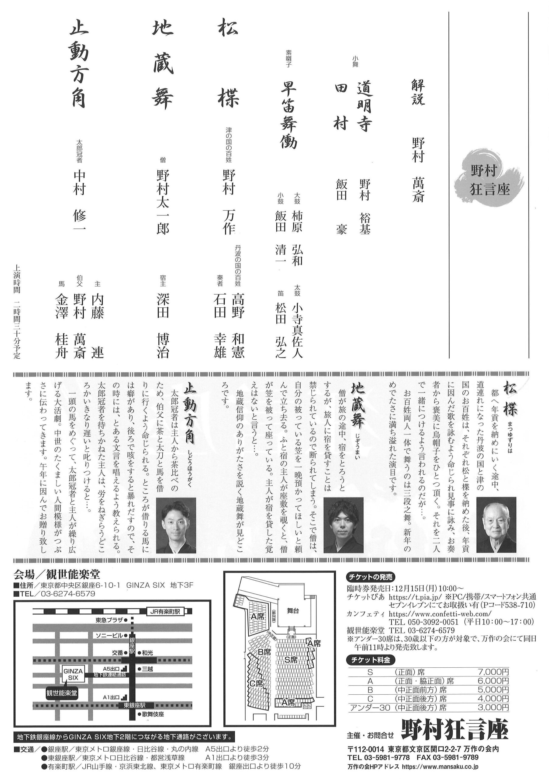 * 一般発売で売切の場合、キャンセル待ちを万作の会 (TEL:03-5981-9778)にて承ります。